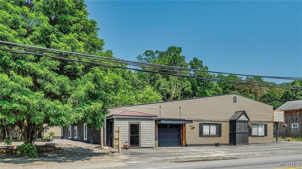 Must see 4 unit with commercial space & renovated apartments located minutes from East Aurora on the highly visible corner of Olean Rd. & Emery Rd. Open commercial space (unit D) with overhead door connects to a gorgeous studio apartment with brand new kitchen and high end bath. Rear 2 bdrm apartment (unit C) is completely renovated with vaulted ceilings, open floor plan, high end bath & enclosed sun porch overlooking the huge, fenced yard automated gate. All units have private entrances, separate utilities & laundry facilities. All units are currently generating income being fully furnished short term rentals within walking distance to Emery Park & Gow School. Imagine the possibilities of having a highly visible business (hair salon, pet grooming, ice cream parlor, ect) while collecting rents! Commercially zoned lot next door is also available (see MLS #B1591780)