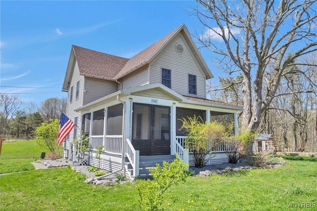 This charming 4-bedroom, 3-bathroom farmhouse sits on 4.9 scenic acres—perfect for peaceful country living. Spend your summer evenings relaxing on the fully screened-in porch or tend to your raised garden beds and enjoy homegrown vegetables. Step inside to find beautiful hardwood floors flowing through the dining room and kitchen, which features modern stainless-steel appliances. The spacious living and family rooms offer serene views of the rear of the property, creating a warm and welcoming space for entertaining or relaxing. Convenience abounds with a first-floor laundry room, and the walkout basement provides versatile space—ideal for an in-law suite, guest accommodations, or extra living area. Updates include a new roof and radon mitigation system (2017), water filtration system (2018), and hot water tank (2023). For those with a green thumb, blueberry bushes are also planted on the property. Don't miss out—schedule your private tour today! Open House Sunday July 13th from 11:00am - 1:00pm
