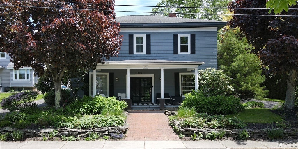 Experience the beauty of Bemus Point, a scenic village on Chautauqua Lake's shores, with this exquisite home offering 4 spacious bedrooms, plus a bonus room and 3 full bathrooms. Inside, the first floor welcomes you with a warm and inviting living room featuring built-in shelves—ideal for displaying books, artwork, or cherished décor. Adjacent to the living room is a formal dining area that exudes warmth and charm—perfect for both everyday meals and festive occasions. A conveniently located first-floor bedroom adds flexibility, whether used as a guest room, home office, or additional living space. Nestled between the lower and upper levels, a generous landing with a built-in closet provides an inviting space for a peaceful sitting area or cozy reading corner. A short staircase leads to the spacious primary bedroom, featuring a sizable walk-in closet and a full ensuite bathroom, with a spacious, tiled walk-in shower equipped with dual shower heads. The second floor additionally boasts two spacious, elegantly appointed bedrooms alongside a beautiful full bathroom. At the heart of the home lies the expansive kitchen, thoughtfully designed with ample cabinetry, a cozy breakfast nook, a built-in desk, a central island with bar seating, a wine cooler, & an additional sink. Off the kitchen is a convenient laundry room—offering the perfect blend of style and functionality. French doors off the kitchen open to a charming covered porch, seamlessly flowing into a spacious patio—ideal for outdoor entertaining and unwinding around the cozy fire pit, all within a warm and inviting outdoor living space. The large 7 car garage boasts a fantastic bar area with comfortable seating - a perfect a space that offers endless possibilities for entertaining and relaxing. Perfectly suited for both permanent living and investment purposes, this property presents significant potential for short-term and long-term rental income streams. All furnishings are negotiable. Also included is parcel 063601-333-009-0002-034-000.