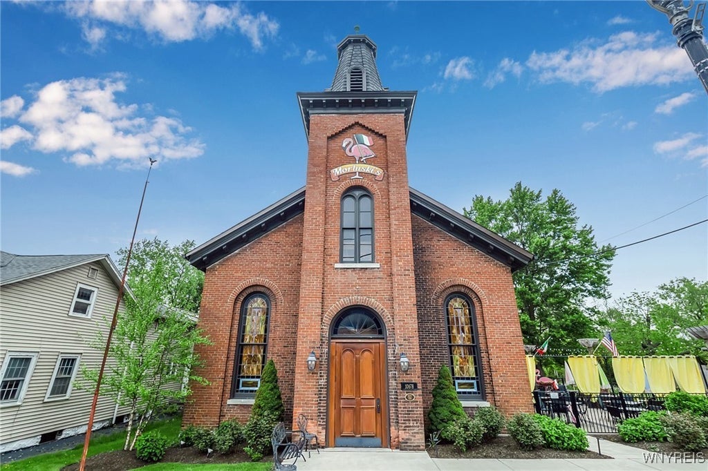 This beautifully updated commercial building in the heart of Clarence Hollow is currently leased to the well-known Morluski’s Restaurant. The space has been thoughtfully renovated with restored windows and doors, custom moldings, steeple enclosure, ADA-compliant restrooms, upgraded lighting, and fully pre-wired mechanical systems for HVAC, electric, plumbing, and security. Additional highlights include a spacious outdoor patio, restored roof and steeple, new walkways, and enhanced landscaping. The property offers ample on-site parking with 30 standard spaces and 2 designated handicap-accessible spots. Whether you're an investor seeking a fully leased property or a long-term hold in a high-visibility location, this opportunity checks all the boxes. Sale includes building only NOT business.