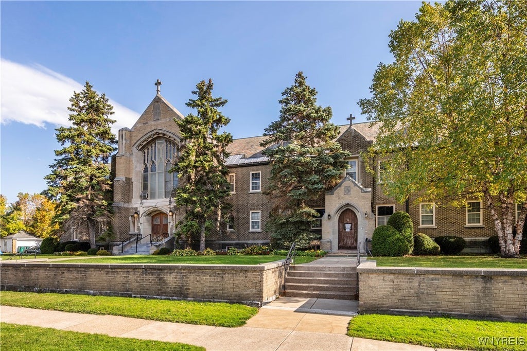 Welcome to the Monastery of the Little Flower of Jesus, a once-in-a-lifetime property in the heart of North Buffalo. This is an extraordinary opportunity to own a piece of Buffalo’s history, marrying timeless architectural beauty with functional amenities for a truly unique living or investment experience. Conveniently located, the monastery is surrounded by the city’s amenities while maintaining a sense of seclusion within its own serene grounds. The estate boasts an awe-inspiring and large chapel with soaring ceilings, wooden beams, and ornate details throughout. There are multiple private living spaces and three one-bedroom apartments, as well as ample bathroom facilities. A functional commercial kitchen and laundry facility offer the convenience and practicality needed for various purposes. Additional amenities include multiple storage facilities, offices, meeting spaces, and elevator access. Step outside the walls of the monastery itself to find expansive and incredibly lush private gardens enclosed within a high privacy fence. This oasis provides a tranquil retreat from city life.