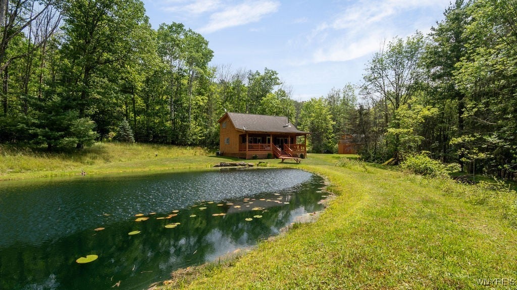 Looking for year round fun? This property with a picturesque setting has it all! Situated on over 66 acres of privacy, you can enjoy hunting, fishing, hiking, target shooting, ATV trails, swimming, picking wild blackberries, raspberries, and leeks, sledding, and ice-skating - just to name a few! This unique property also features a stocked pond predominantly with calico bass and perch, six deer stands, and a natural spring that has been tested for safe drinking. This land can be logged in the next 2 to 5 years for additional income. Most trees are oak, ash, cherry, beech, maple and evergreens. The cabin offers a beautiful, covered porch to soak in all the views and nature. As you enter, you are greeted by a vaulted ceiling, a spiral staircase , and a beautiful, expansive mural. First floor is equipped with main bedroom, full bath, laundry, wood burning stove, and an open concept. amenities like central A/C, satellite tv and internet add a modern touch. The cabin will stay furnished and most household items left for the new owner. The 2 story barn provides plenty of storage for all the “toys” and maintenance items. Located a short drive from Lime Lake, Ellicottville, Alleghany State Park and Salamanca Casino. This property has been well maintained and kept by current owners for over 60 years! Come see all this property has to offer as it awaits its new owners! The ultimate retreat!
