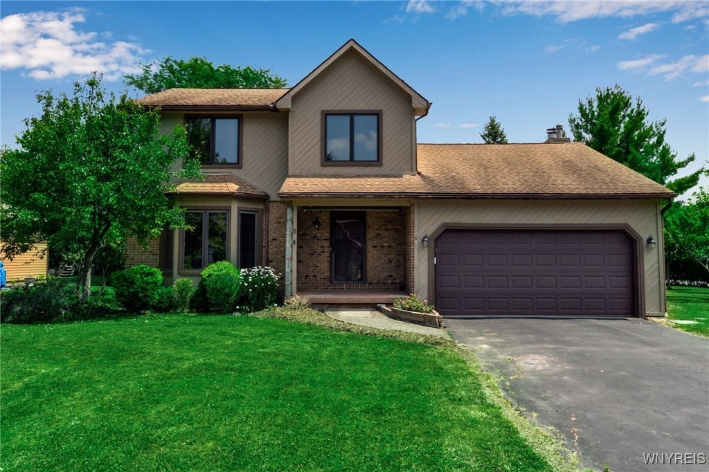 This 4-bedroom, 2.5-bath home is located in a wonderful location near the University at Buffalo North and the 990, providing easy access to the city and all suburbs in Western New York! The home features hardwood floors throughout most of the first and second floors. The cozy family room boasts a cathedral ceiling, a fireplace flanked by bookshelves, and is conveniently located off the spacious kitchen. The kitchen is equipped with granite countertops, includes all appliances, a breakfast bar, and a large dining area surrounded by windows and enhanced with recessed lighting. The formal living and dining rooms are filled with natural light and also feature hardwood floors. On the second floor, you’ll find a private ensuite with an updated full bath that includes a double vanity with granite countertops and newer faucets, along with a walk-in closet. Additionally, three nicely-sized bedrooms complete the second level. The basement offers a partially finished rec room with luxury vinyl flooring and a laundry room area. Recent updates include a newer furnace and air conditioning system, approximately 3 years old. The property also features a two-car attached garage and a double-wide driveway. Other highlights include solid 6-panel doors and blinds on most windows, along with a conveniently located half bath off the foyer. This home is located in the highly rated Williamsville School District!