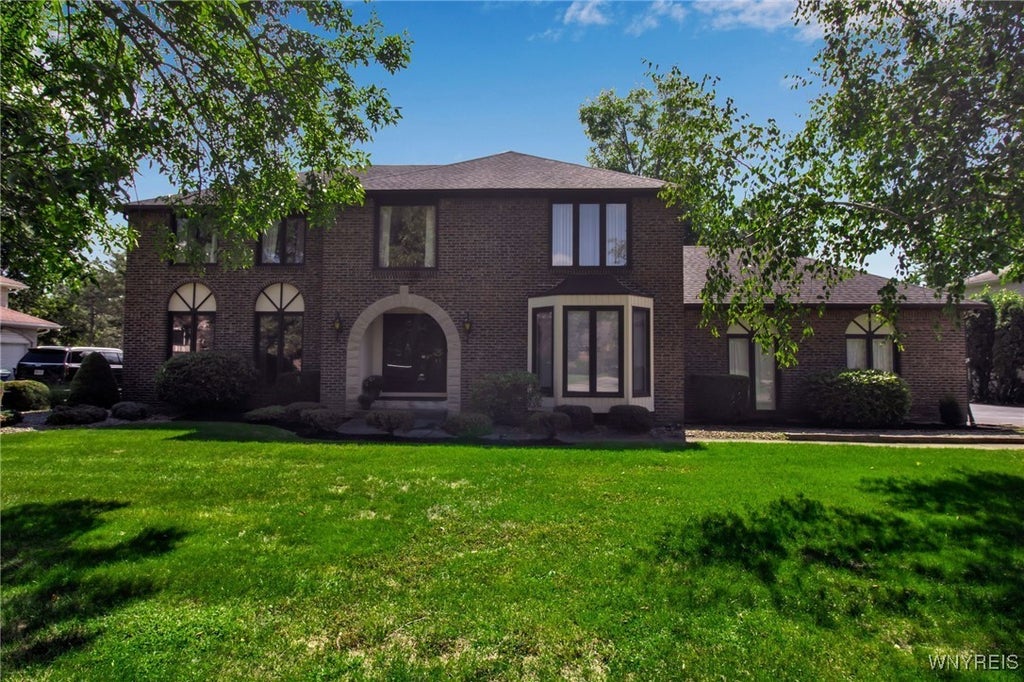 Stunning curb appeal greets you as you approach this lovely home located in a classic, sought-after neighborhood in Williamsville. This spacious 4-bedroom, 2.5-bath home offers the perfect blend of comfort, style, and convenience. You'll be impressed when you step inside the grand 2-story foyer, with a circular staircase, and begin to take in the size of this wonderful home. A nice private office with built-ins and floor-to-ceiling windows off the foyer is ideal for a great workspace or a quiet spot to read and relax. The functional floor plan features a large living room and dining room with generously sized windows for beautiful natural light! The kitchen features updated cabinets, countertops, appliances, a center island, and a nice eating area. The kitchen is off the cozy family room with a fireplace and lovely windows, providing a perfect place for relaxing or entertaining. Additional first-floor features include a first-floor laundry and a convenient half bath. Upstairs, the four generously sized bedrooms provide plenty of space for rest and privacy, including a large primary suite with an en-suite bath and walk-in closet. Additionally, there is a 2nd full bathroom and ample closet space throughout. The 2nd floor looks over the elegant foyer and staircase, adding to the beauty of the home. A wonderful three-season room off the kitchen is a great bonus space! Enjoy outdoor living in the large backyard, ideal for weekend barbecues, gardening, or simply unwinding after a long day. The full basement offers plenty of room for storage! The attached garage features an epoxy floor and a drain. With its curb appeal, functional layout, and unbeatable location, this home checks all the boxes. Don't miss this opportunity to own a beautiful home in one of the most desirable communities around! Located just minutes from shopping, dining, parks, and major commuter routes, it is located in the highly rated Williamsville school district.