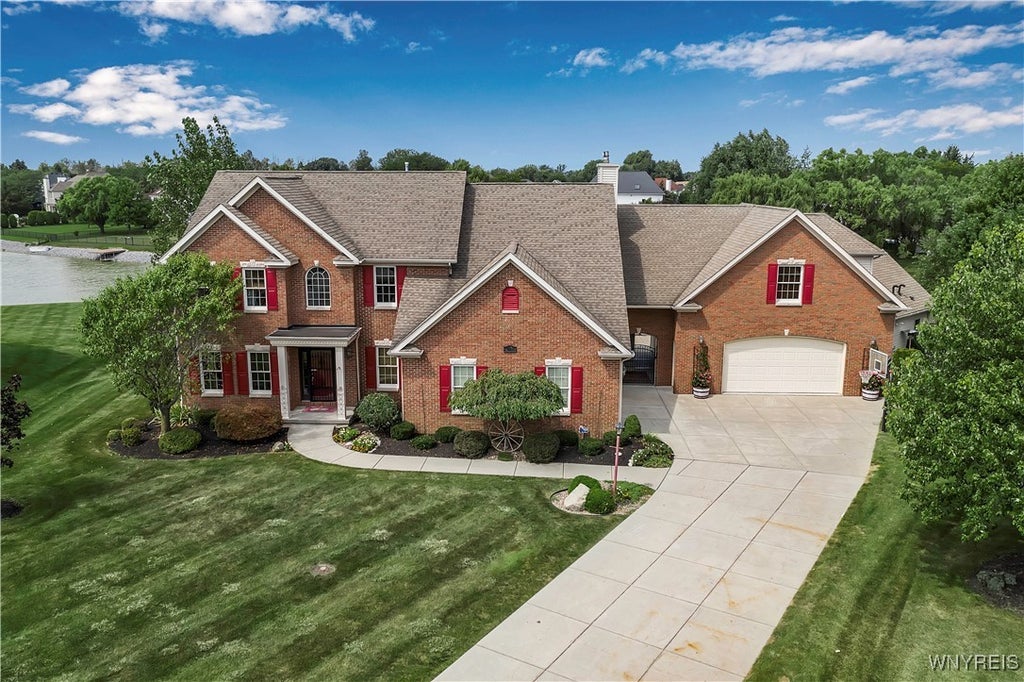 Welcome to your dream home in Lock Lea, within the highly sought-after Williamsville School District! This 6 Bedroom 4.5 Bath home is tucked away on a quiet cul-de-sac with panoramic pond views, this extraordinary traditional residence offers unmatched elegance, functionality, and space for every lifestyle. Step inside to a grand two-story foyer, leading to a sun-filled home office and a formal dining room with French doors opening to a private terrace. The chef’s kitchen is truly one of a kind, boasting a hammered copper range hood, farmhouse sink, custom copper countertops, oversized island, stainless Subzero refrigerator, Red American Range Stove, built-in bookcase, and a walk-in pantry—perfect for entertaining. The adjoining breakfast room overlooks the picturesque yard and pond, while the warm and inviting family room features a large gas fireplace. A mudroom, laundry, and half bath complete the first floor. Upstairs, you’ll find four spacious bedrooms and two full baths, including a luxurious primary suite with double walk-in closets and a spa-like en suite bath. The finished basement expands your living space with ceramic tile floors, an updated full bath, abundant storage, and a private entrance. The addition above the garage offers incredible flexibility, with two bedrooms, a full bath, laundry, and a generous living area—ideal for an in-law suite, guest quarters, or multi-generational living. Outside is your own private resort: a fenced yard with panoramic pond views, a covered patio, an in-ground gunite pool with hot tub, cabana with wet bar, half bath, and laundry—everything you need for summer fun and family gatherings. The property also includes two separate two-car garages and an extended concrete driveway. Actual square footage of home with addition is 4043. If you’ve been searching for the perfect combination of luxury, comfort, and versatility, this Lock Lea gem is the home for you!