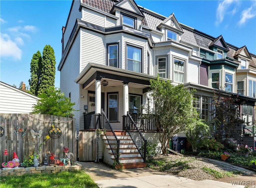 Welcome to 367 Huntington, an historic row house that has been stunningly updated from top to bottom! This North buffalo gem offers 1,362 sqft with 4 bedrooms and 2 full bathrooms. In 2025 the exterior received a major facelift with new roofs and siding with a transferable warranty. Inside enjoy a mix of traditional character and modern convenience with all-new plumbing, a hot water tank, furnace, and central air from 2018, plus a new water and sewer line in 2023. The thoughtfully designed updates continue with fully updated bathrooms and a partially finished basement that provides additional living space with a full bath. The second-floor features two bedrooms, an additional full bath and two more bedrooms on the third floor to top it off The fully fenced yard and brand-new deck built in 2025 provide a private outdoor oasis, while a security system with a Smart thermostat adds modern convenience and peace of mind. All of these features are situated in a highly desirable North Buffalo location; surrounded by shops, restaurants, and so much more. Showings begin Monday, 9/22!