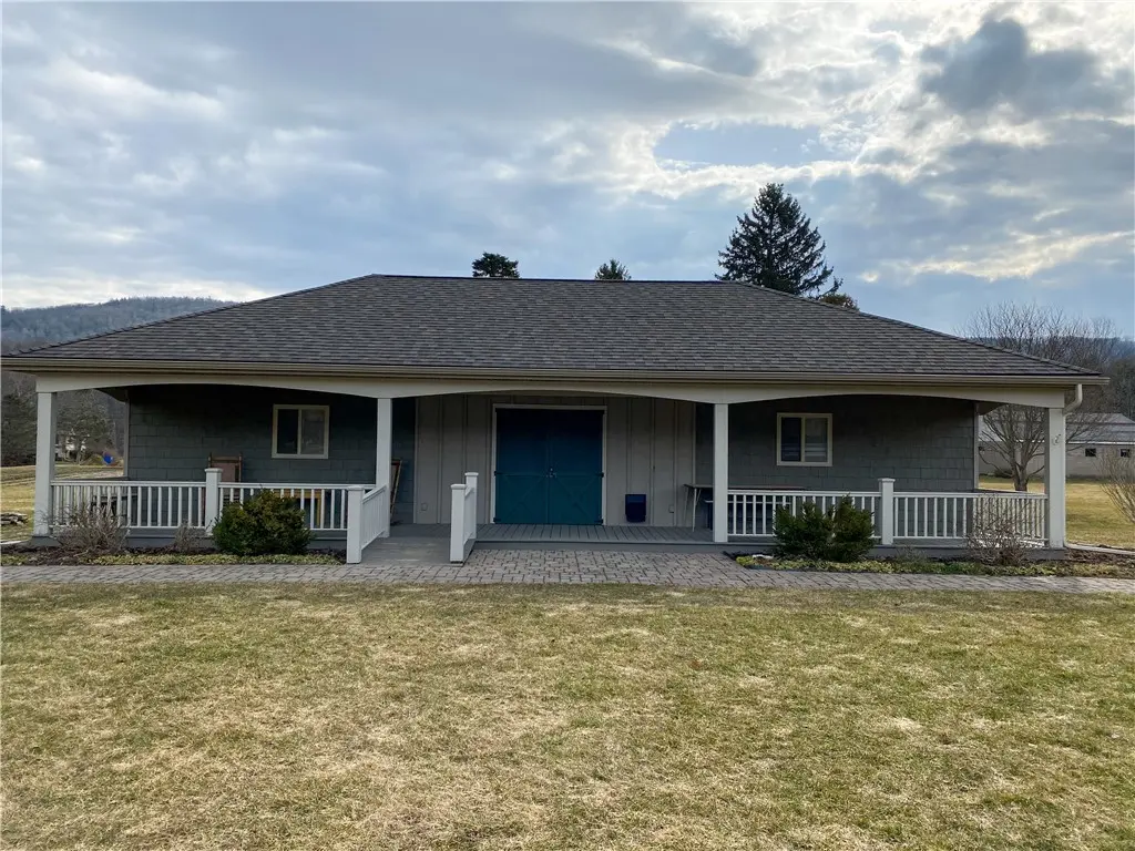 Immaculately maintained single story commercial building with ample parking, established gardens, large storage shed and charming covered front porch. Previously used as an Organic Produce stand. Main building includes bright, open retail area that is ADA accessible, 20C licensed commercial kitchen, walk in cooler, and attic storage. Outside is a large covered front porch and covered wash/prep area at back of building. 200 amp electric with village water and well used for irrigation. Natural gas, 1000 gallon septic, and spacious shed. Plenty of parking and over 300 ft of road frontage!