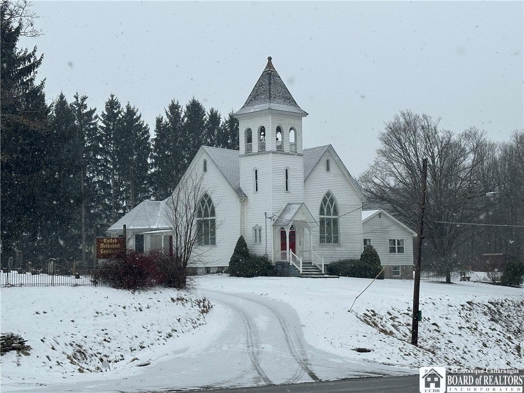 This stunning 9,816 sq ft church, located in Steuben County, offers a rare opportunity for a variety of uses. The property spans two floors, with an elevator providing easy access to both levels. The church features impressive cathedral ceilings and beautiful stained glass windows, creating a serene and inspiring atmosphere. The basement is equipped with a full commercial kitchen, perfect for large gatherings, events, or community meals. The property also includes multiple office and classroom spaces, offering flexibility for administration, meetings, or educational purposes. With its gorgeous finish work, well-maintained interior, and spacious layout, this church is ready for immediate use or conversion to suit your needs. This property has immense potential, making it a must-see for anyone seeking a unique, versatile experience.
