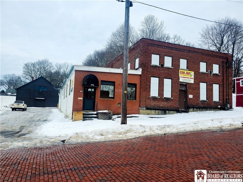 Looking for a warehouse /or a light multi-use manufacturing building to either start or grow your business in the city of Jamestown. This brick building has 9,877 sq. ft., situated on a double lot, with plenty of parking. Total square foot for the office is approximately 996 square feet and is currently rented. Main shop is approximately 3002 square feet, small shop area approximately 582 square feet, garage area approximately 2011 square feet, two bathrooms on the main floor. Warehouse space with overhead door, 2nd floor storage [multiple rooms] is approximately 3002 sq. ft., this building has been well maintained with three phase electrical service. Endless possibilities, with enormous square footage and high ceilings. Owner will consider owner owner financing with a substantial down payment.