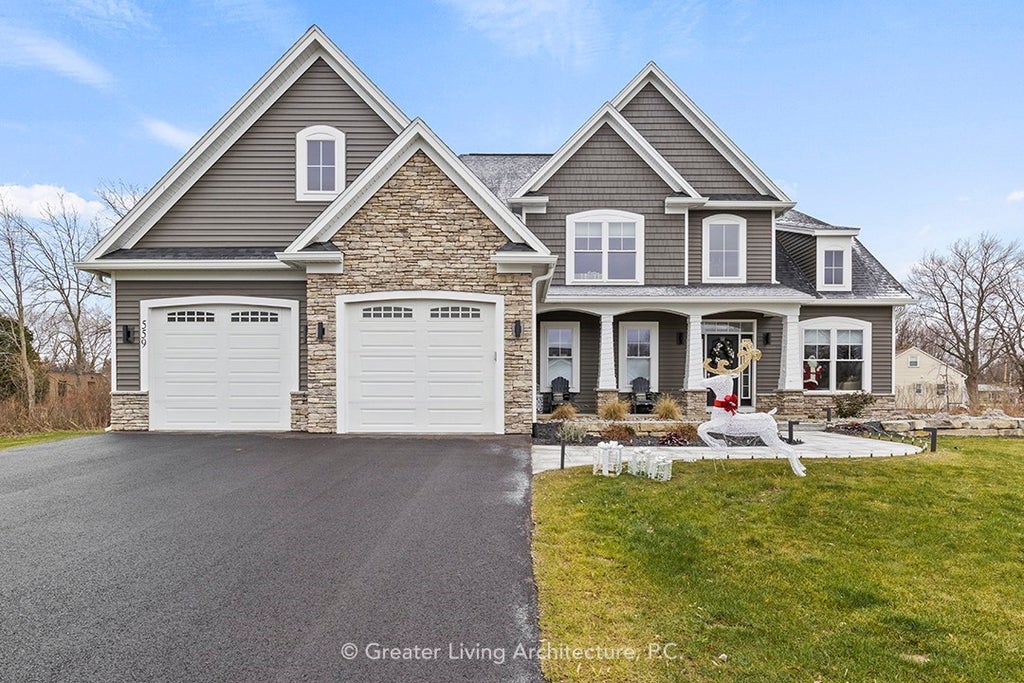 Welcome Home! Use our plan or choose your own. The Elliot features a 1st floor primary bedroom with a full bath and walk in closet for added comfort and privacy. You will be captivated by the 2 story great room and grand foyer. The heart of the home is the spacious kitchen featuring elegant quartz countertops, a stylish tile backsplash and a walk-in pantry. Bonus room over the garage adds a 4th bedroom to this plan. Enjoy the peaceful serenity of nature on your back porch overlooking more than 3 acres of your partially wooded lot with a creek. 1st floor laundry included for your convenience. Quality craftsmanship and modern finishes make this the perfect home for you. Located in Spencerport School District. Visit Greaterliving.com to choose a different plan and make your homebuilding dreams come true!