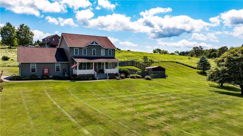 Welcome to 7404 Bonney Hill Rd, Hamilton, NY. This meticulously maintained Colonial offers the perfect blend of comfort, functionality, and scenic charm. Featuring three spacious bedrooms, three full bathrooms, and a convenient half bath, this home sits just 2 miles from the vibrant Village of Hamilton and Colgate University—placing culture, dining, and community events right at your fingertips. Step inside to discover a sunlit open-concept layout that seamlessly connects the kitchen, dining, and family room—ideal for entertaining or cozy nights in. The kitchen boasts granite countertops, stainless steel appliances, and an efficient design that makes everyday living easy. Second floor highlighted by impressive Primary Suite featuring a beautiful tiled bathroom with walk-in shower, soaking tub and large walk-in closet. The second floor is rounded out by two additional bedrooms and full Guest Bath, as well as the convenience of a 2nd floor Laundry Room. Outdoors, your private backyard oasis awaits. Enjoy morning coffee or evening gatherings on the expansive deck, relax on one of two generous patios, or retreat to the rustic cabin-style shed. Mature landscaping surrounds the fully fenced yard, complete with a mowed walking path—offering beauty and tranquility year-round. Additional features include a partially finished basement with a full bath and walkout to the oversized two bay garage. Central air and many newer windows. Whether you’re drawn by small-town charm, stunning views, or the welcoming layout, this home is a true gem in the heart of Central New York. Great House, Beautiful Setting! Please refer to the attached 3D interior walk-thru, or copy the link below to your browser: https://bit.ly/Tour7404BonneyHillRdHere . Please note that showings can begin on June 5th.