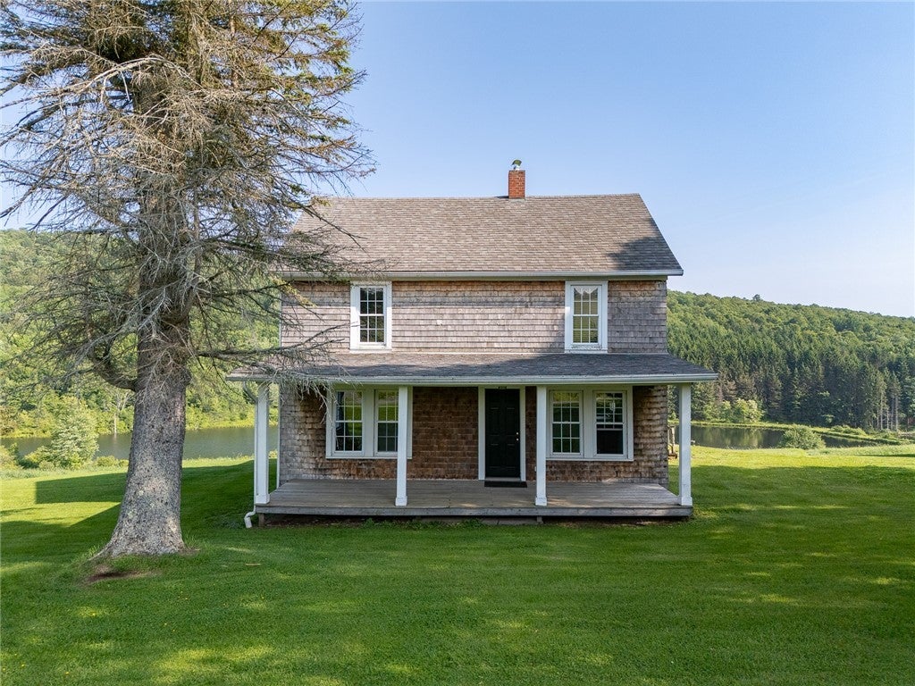 The LAKE HOUSE. A c.1905 cedar shingle clad, 2- story farmhouse overlooking an astounding 10-ACRE LAKE fed by seven natural springs set on 275 acres. The 3 bed, 2 bath home offers open concept living and dining rooms. A sun room gives way to an oversized deck with a vantage point to appreciate the lake, two large docks and bucolic surroundings. A c.1825 equestrian barn, with a complete renovation in the mid-1990’s, offers 8 - 12 foot by 12 foot horse stalls and a foaling stall constructed with Southern yellow pine. Additionally, the tack and wash rooms feature hot water, heat and electricity. The barn leads to 11 acres of quality three rail wood fencing enclosing lush pastures with a run-in shed. Miles of hiking/horse riding trails lead to 55+ acres of open pastures on top of the mountain with spectacular views. A free-standing garage is adjacent to the home and two additional fields (10 ac.) are located off of E. Handsome Brook Road. The LAKE is an amazing focal point visible from all areas surrounding the home. Delhi Central School District and minutes to the village of Franklin offering boutique shops and restaurants.
