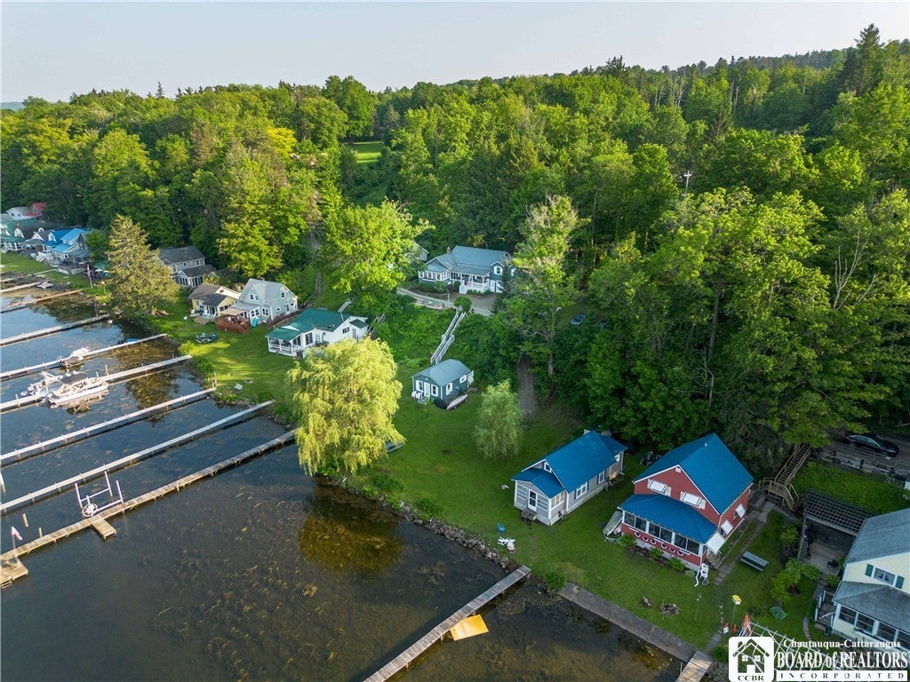 Tucked away on a quiet dead-end road, this charming lakefront cottage at 4896 Ashville Bay Road offers the perfect blend of comfort, character, and natural beauty. With over 141 feet of Chautauqua Lake frontage between five total parcels, this is the kind of place where memories are made and summers seem to last a little longer. Step onto the welcoming covered porch and take in sweeping lake views that carry through to the bright, year-round sunporch—a cozy spot for morning coffee, reading a good book, or watching the boats drift by. The living room features a classic fireplace and opens into a sweet dining nook, creating a warm and relaxed gathering space. Inside, the main bedroom includes an en-suite bath and generous closet space, while two additional bedrooms, a full hallway bathroom, plus a large bunk room with a full bathroom offer plenty of room for family and guests. The kitchen is spacious and full of potential, ready for your personal touch to make it your own. With two ways to get down to the water, either down the staircase or ride down/ load up the mule that is being sold with the property to the darling guest cottage, adds to the storybook charm with its own living/bedroom, full bath, and kitchenette—ideal for visitors or peaceful escapes just steps from the lake. The attached garage, expansive lot next door, provide for extra parking, and lush landscaping complete this one-of-a-kind lakeside retreat. Whether you're looking for a year-round fully furnished home or a seasonal getaway, this sweet lakeside cottage is ready to welcome you.