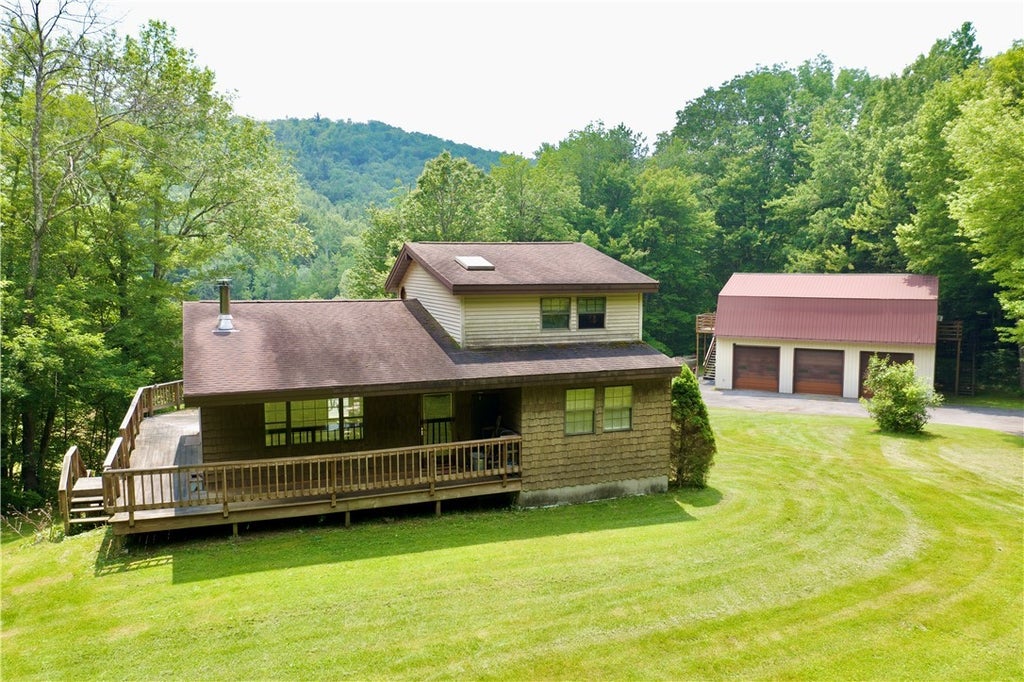 171 Acres of Privacy, Versatility & Income Potential! Escape to the peace and privacy of 182 County Highway 36A — a remarkable property offering 171 sprawling acres of fields, woods, and a picturesque pond. Whether you're looking for a private country estate, multi-generational living, or rental income, this property offers it all. The main residence is a spacious 3-bedroom, 3-bath contemporary home featuring comfortable living spaces, scenic views, and an attached one-car garage. Enjoy peaceful mornings overlooking your own land, with plenty of room to relax or entertain. Car enthusiasts, hobbyists, or business owners will appreciate the massive detached 3-bay heated garage, complete with a car lift and extensive workspace. Above the garage, you’ll find two separate rental units — a 1-bedroom apartment and a 2-bedroom apartment — perfect for extended family, guests, or generating extra rental income. With 171 acres at your doorstep, there’s room for farming, hunting, hiking, or simply enjoying nature in total privacy — all within easy reach of Cooperstown, Oneonta, major highways and less than 3.5 hours to the George Washington bridge. This is a rare chance to own a true Upstate New York retreat with endless potential.