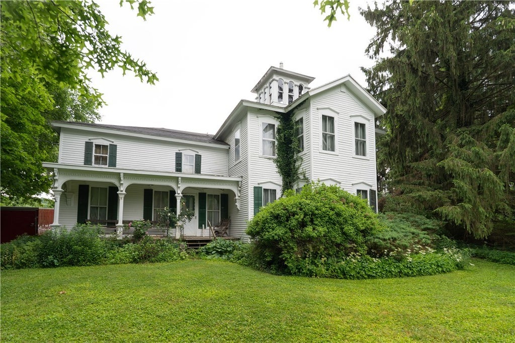 Have you been looking for a farmhouse with nearly 3,000 square feet, ten picturesque acres and three outbuildings in Wyoming County?? If you have then look no further - opportunity knocks right here! This 1878 colonial home is ready for its next owner - having been in this family for over sixty years!! Inside you will find a country kitchen with a gorgeous oak built-in cabinet, large bay window overlooking the beautiful gardens and surrounding farm fields. This is the perfect house to entertain with a large formal dining room which leads into the spacious living room with wall to wall carpeting and wood burning fireplace. Front and back staircases makes it ideal for a large family. First floor offers two bedrooms, full bathroom, walk-in pantry and first floor laundry. Upstairs are four spacious bedrooms and a common area with billiard table. This area is perfect for a another living room or game room for kids, home office, work out space or play area. Another full bath with stand up shower is on the second level. The third floor attic space has an amazing cupola that you can look out at the rolling hills. Let's step outside where you are surrounded by gorgeous flower beds and gardens. Two incredible barns (one with newer metal roof) - plenty of room for farm animals, chickens, horses, alpacas - whatever you and your family desire. Light in first floor bedroom will be replaced with another fixture prior to closing. This property is being sub-divided - part of a another parcel (MLS # R1617154). Taxes and assessments WILL CHANGE after closing. Taxes and assessment displayed is for the house, barns and 211.75 acres. This parcel will consist of approximately 10 acres (the other 202 acres are being sold separately or can be sold all as one). PLEASE DO NOT LET YOUR BUYERS WALK THE PROPERTY WITHOUT PRIOR APPROVAL - first time being offered in over 60 years. Delayed negotiations until Tuesday, July 15th @ 12:00 PM.