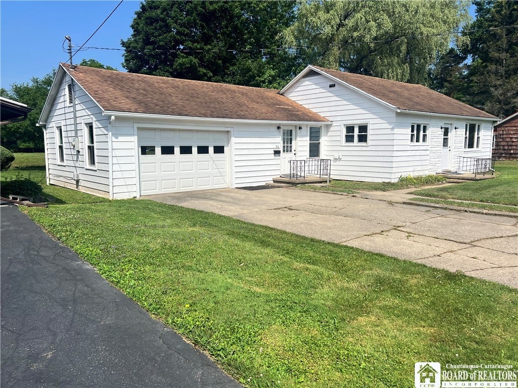2 BEDROOM, 1 BATH RANCH WITH ATTACHED HEATED GARAGE. This home is move-in ready. Perfect for a first time home buyer or a buyer looking to downsize. Eat-in kitchen with breakfast bar and lots of cupboards and countertops. Living room with electric fireplace. Two bedrooms, large bathroom/laundry room. Entry foyer/mudroom. Attached garage with lots of storage space. Nice yard with ramp in backyard.