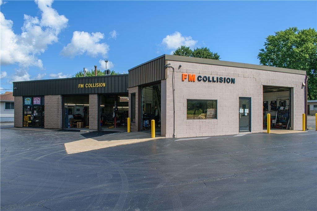5 Bay Automotive Opportunity on a high visibility corner. Turn Key with equipment only except hand tools, business does not convey. State of the art spray booth, PPG Mixing system complete with supplies, Lincoln welder, Air compressor, truck box removal equipment, transmission jack, 220 Volt spot welder, engine hoist, A/C recovery unit, wall mounted strut machine, frame equipment, lifts, evap. system smoke machine, battery charger, office furnishings and surveillance system.
