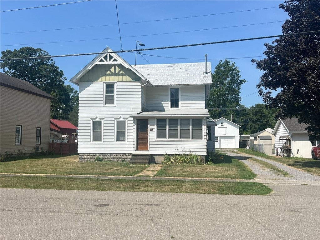 Just Listed in the Village of Nunda! This charming 2-story home offers 3 bedrooms and 1 full bath, with the flexibility of a possible first-floor bedroom for added convenience. Step inside to an updated kitchen perfect for everyday cooking or entertaining guests, and enjoy relaxing in the enclosed porch year-round. Outside, you’ll find a partially fenced yard ideal for pets, play, or gardening. The property also features a detached 2-story garage/barn, providing ample space for vehicles, storage, or a workshop. Nestled in the heart of the village, you’ll be close to shops, dining, and community amenities. Home is being sold in AS-IS condition.