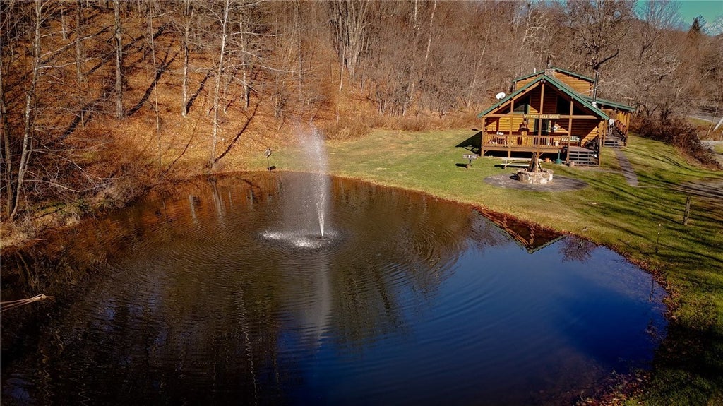This rustic log cabin home nestled amidst a tranquil pond. 195 + acres of air so fresh and crisp, carrying the scent of pine and damp earth. This home is a perfect retreat for relaxation and reflection. Come enjoy the porches' views of the pond reflecting the sky above and the trees that line the banks. Spend your nights curled up around the inside fire place. Spacious game room featuring a bar, pool table and card table. Fire pits, grills, and a scenic over look for you to enjoy. A finished barn for entertainment and a bar upstairs. Take a hike up the mountain or an ATV to check out the orchard, and quarry. If you love to hunt this is the place for you, with trails and 5 large hunting stands through out the property. Bring your family or friends to make amazing memories. A few minute drive to the beautiful Delaware River, where you can fish, swim, or kayak. Close to French Woods camp, Resort World Catskills, Roscoe Mountain Club, farmer markets, and Bethel Woods Center for the Arts. NYC is only 2 hours away!!