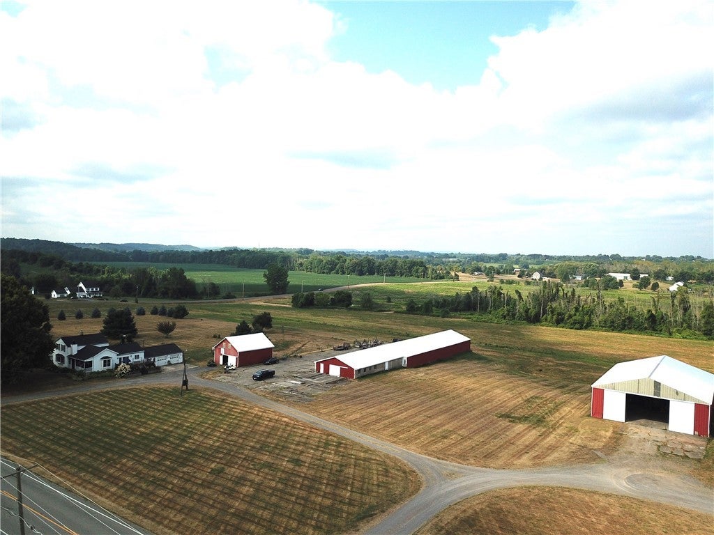 2887 Walworth Road – Macedon, NY – Gananda School District Discover the perfect blend of country charm and modern convenience in this versatile 3–4 bedroom, 1½ bath home set on approximately 6.4 acres of land. Inside, you’ll find a custom kitchen and a beautifully designed full bath, accented by warm natural wood beams and a cozy propane fireplace. Relax on the inviting open front porch or entertain on the side deck. The attached 2-car garage, updated mechanicals, vinyl siding, and a new roof provide ease of ownership. For those seeking space for hobbies, farming, horses, or business opportunities, this property offers over 12,000 sq ft of barn space. One barn is currently rented through 12/31/25, providing potential income. One barn has a existing horse stall with yet another barn having the size and opportunity to add many stalls. Whether you envision a farmette, workshop, or creative studio, the open acreage and expansive outbuildings offer endless possibilities. This property is being split from a larger parcel so the taxes will be adjusted accordingly. Also being offered with 51 acres, MLS R1631047.