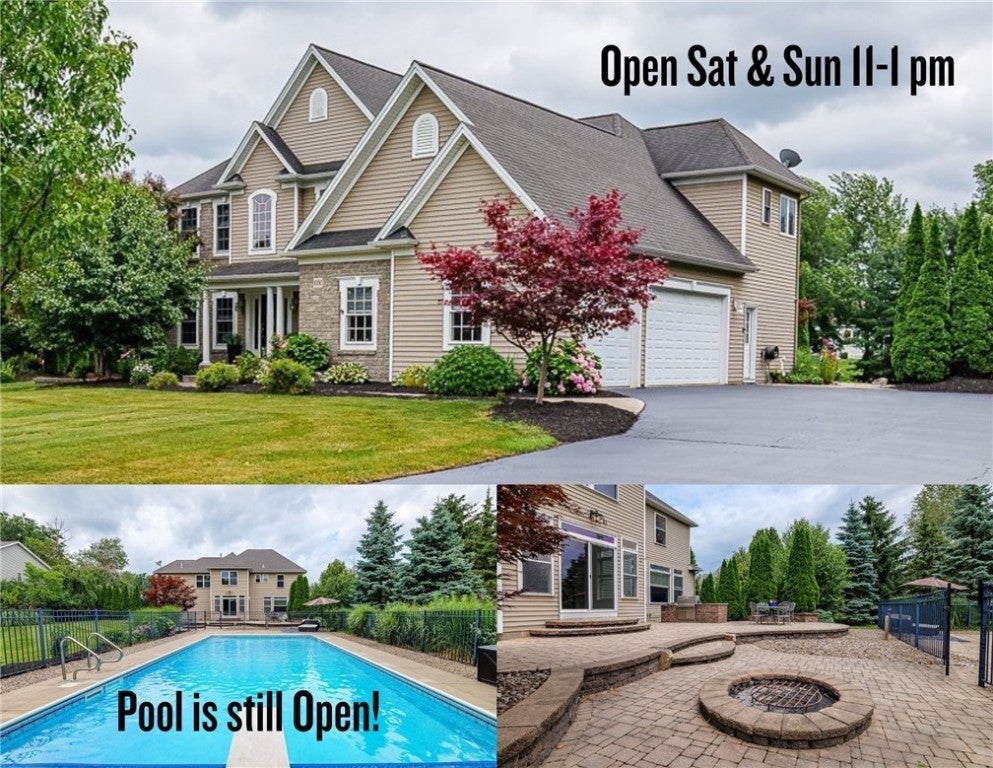 OPEN SAT & SUN 11-1pm * Welcome to 1080 Sagebrook Way, Webster Thomas Schools! DREAM HOME + DREAM POOL + DREAM PATIO = DREAM LIFESTYLE OPPORTUNITY * Be prepared to fall in love * Staycation Paradise at it's finest * Welcoming Open Front Porch leads to MAGNIFICIENT FRONT-to-BACK 2 STORY FOYER w/SPLIT STAIRCASE * One-of-a-kind Primary Bedroom offers 660 SQFT of PRIVACY w/sitting room & gas fireplace, dream enclosed step-in shower, heart shape jacuzzi jet tub & HUGE WALK-IN CLOSET * 9' CEILINGS CARRY THROUGHOUT THE ENTIRE FIRST FLOOR: O-P-E-N Cherry kitchen w/Zodiac counters is a Chef's delight w/stainless appliances, double oven, 26 cabinets & 16 drawers & COMPLETELY O-P-E-N to H-U-G-E SUN DRENCHED DINETTE w/WALLS OF WINDOWS CONNECTING to GLORIOUS outside living space! Coffered ceiling in gas fireplaced great room w/HARDWOOD FLOOR, home office w/HARDWOOD FLOOR, elegant well-appointed dining room w/HARDWOOD FLOOR & Marvelous well-equipped MUDROOM w/WALK-IN PANTRY! & WALK-IN CLOSET!, powder room & first floor laundry room w/CONVENIENT EXTERIOR DOOR TO REAR YARD * PREMIUM LOT(.81 acres) w/SOUTHERN EXPOSURE & 3,375 square feet of masterfully designed PATIO/Hardscape ALL beautifully surrounding 40' X 20' HEATED IN-GROUND POOL(30,000 Gallons) OASIS creating a DREAM LIFESTYLE! * The beautifully finished 14 course basement adds an additional 1,100 square feet of HIGHLY FUNCTIONAL SPACE: game room & exercise area, home movie theater, WELL APPOINTED WET BAR AREA to watch the next game, 3rd full bathroom & egress window * ALL BEDROOMS are GOOD SIZE & ALL BEDROOMS HAVE WALK-IN CLOSETS!!! * AMAZING AMENITIES EVERYWHERE! * The THREE CAR GARAGE(775 SQFT) w/SECOND FULL STAIRWAY TO FINISHED BASEMENT is a MUST HAVE THESE DAYS! You are ABSOLUTELY going to love it here! TRULY AN ENTERTAINERS DREAM! Everyone will want to be here! EVERYONE WHO LIVES HERE WILL CHEERISH THEIR MEMORIES FOREVER! YOU Must See the 2 Online video walkthrough tours!! * Close to the shores of Lake Ontario & Webster Park w/over 550 acres of nature's beauty to explore * QUICK POSSESSION * DELAYED NEGOTIATIONS until October 13th at 1:00pm. No escalation clauses per Seller. Please submit highest & best offer.