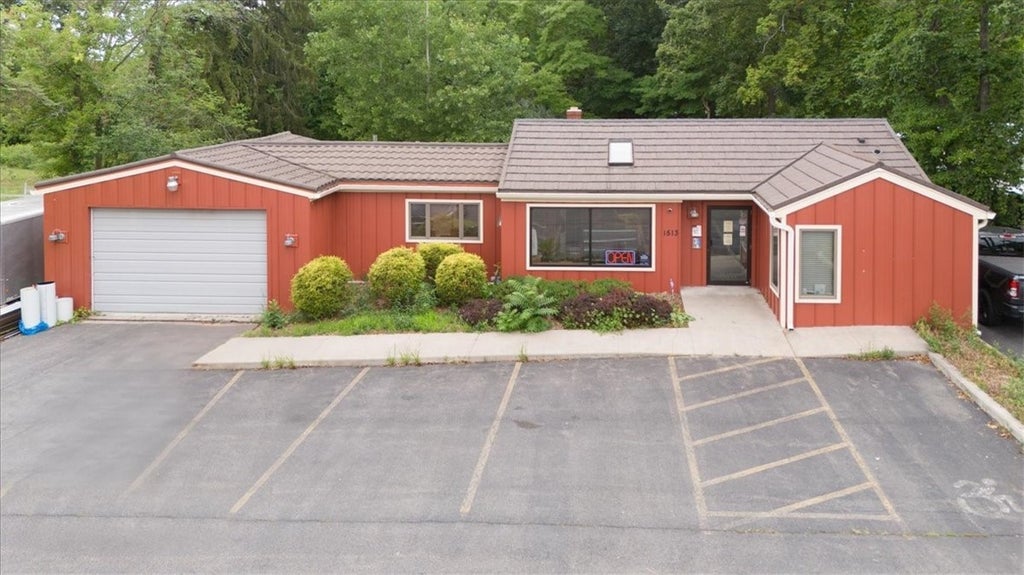 This 1,098 sq ft converted ranch-style building sits on a 0.51-acre lot with parking for 12 cars and room for expansion. Upgraded in 2014 and featuring durable metal siding, a 50-year warranted stone-coated metal roof, and a pristine parking lot—all in top condition. The single-story layout offers flexible retail or office space, with an attached garage perfect for storage, inventory, or operational needs. The flat, spacious lot offers easy access and potential for exterior modifications or additions.