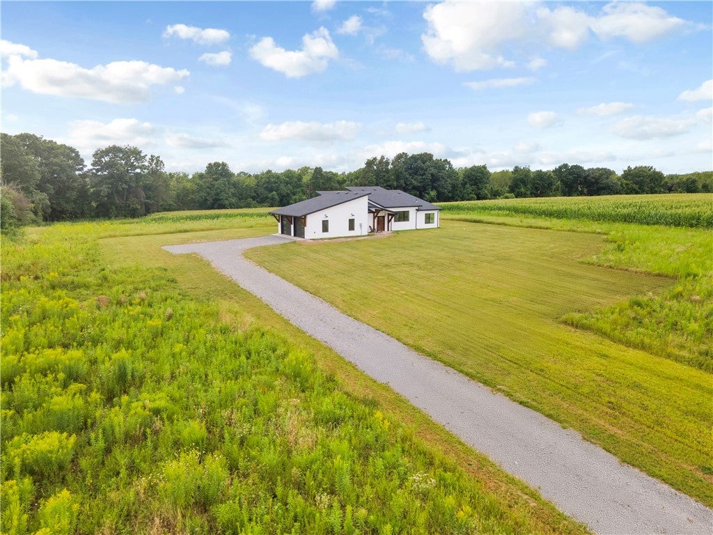 Welcome to 2900 Livonia Center Road, where modern design meets serene country living. Situated on over 22 acres in Lima, this brand new, contemporary ranch offers a rare combination of architectural elegance and natural beauty. Step inside to a stunning open concept layout with soaring 14’ ceilings and polished concrete floors that run seamlessly throughout. Oversized windows in every room of the home flood the home with natural light and frame picturesque views of the surrounding landscape. The custom kitchen is a showstopper, featuring quartz countertops, an oversized island and endless thoughtfully designed cabinetry. The adjoining mudroom includes built ins, a utility sink, and convenient first floor laundry. The primary bedroom with en-suite bathroom, no step shower, and walk in closet opens right to the back patio. 2 additional bedrooms and another full bath round out the home. Outside, relax on both front and back patios, while enjoying the stunning exterior architectural features of the home – dramatic rooflines, timber posts & beams and tastefully designed outdoor lighting for a welcoming ambiance after sunset. Enjoy year round comfort with geothermal radiant floor heating and cold water cooling, complemented by R49 insulation and LED lighting throughout. The oversized garage includes reinforced overhead storage, a mechanical room, and custom garage doors—offering both style and function. Don’t miss this rare opportunity to own a sophisticated, light filled retreat that blends modern aesthetics with country charm.