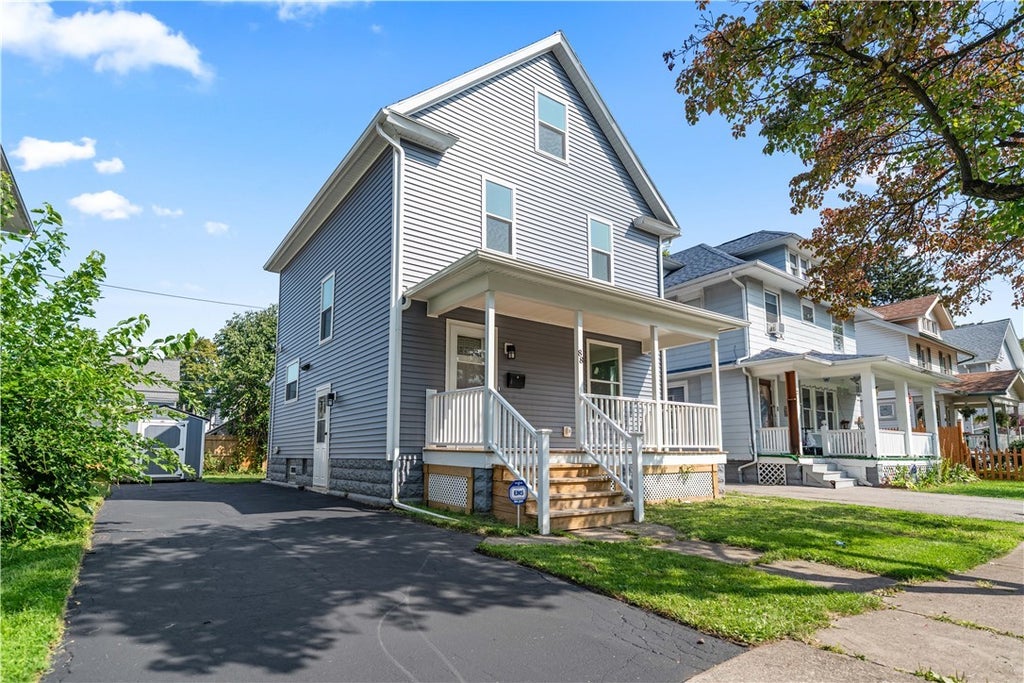 This is a rare and one-time opportunity being offered by the Rochester Land Bank Corporation—a fully renovated home available exclusively for owner occupancy. Unlike any other sale, offers with the required supporting documents will be reviewed, and all qualified buyers will be entered into a drawing where one offer will be randomly selected. Offers and the required supporting documents must be submitted by September 30th. The random drawing will be held on October 2nd. The Rochester Land Bank Corporation will select two additional offers as backup in the event the winning offer does not complete the sale. Built in 1920 and completely transformed from top to bottom, this 1,428 square foot colonial feels like a brand-new home. The square footage reflected on the city of Rochester Website is 1428 and based on a recent appraisal. The renovation includes a tear-off roof, all new windows, high-efficiency furnace, central air conditioning, updated electric service and panel box, new waterline from the street to the house, and a new water tank. The kitchen features new cabinetry and luxury vinyl plank flooring flows seamlessly throughout. The home offers a formal dining room, two full bathrooms, a convenient first-floor bedroom with a full bath, three additional bedrooms upstairs, and a versatile fourth room on the second floor that could serve as a 5th bedroom, home office, or studio. The basement has been professionally waterproofed and includes glass block windows for both efficiency and security. Outside, the private backyard is complemented by a brand-new shed for added storage, and an inviting open front porch provides the perfect place to relax and enjoy the neighborhood. This is not just a house—it is a like-new home, move-in ready and waiting for its next owner occupant. Don’t miss this unique chance to purchase a fully renovated property through this special one-time sale.