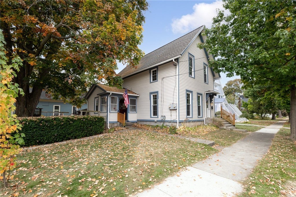 Welcome to this stunning and completely remodeled village home in the heart of Honeoye Falls! History around every corner, formerly known as the St. John’s Nursery School for many years and built by Honeoye Falls founder's granddaughter. Located in a highly desirable spot just steps from the library, shops, restaurants, parks, and schools, this property offers the perfect blend of convenience and small-town charm, all tucked within the quaint village! With over 2,300 SqFt and only 3 owners, this spacious home provides plenty of room to spread out and enjoy. The curb appeal is undeniable with a welcoming new entryway '23. Inside, the main floor features an open-concept layout showcasing a beautifully updated kitchen with new cabinets, concrete counters, tile backsplash, open shelving, and stainless steel appliances. A breakfast bar flows into the formal dining room, living room, and sitting area, creating the perfect setup for entertaining or everyday living. The first-floor full bath was renovated with a new tile shower, while bamboo floors '23 and fresh paint run throughout. 4th bedroom or flex room also on the first floor. Upstairs, you’ll find 3 bedrooms, including a spacious primary suite with a brand-new ensuite '25 offering a new laundry room for added convenience. Extra space perfect for a nursery or office! Don't miss the private, fully fenced backyard complete with a gazebo and playset, or relax on the enclosed front porch! Truly move-in ready with updates from top to bottom, this home combines modern updates with classic village charm!