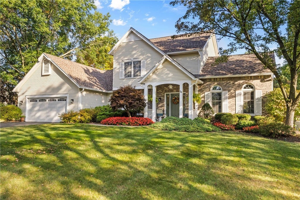 Welcome to this inviting Contemporary Colonial in Churchville Chili Schools. Home is a true 10+ with many new amenities that will wow you. Inviting foyer to the great room with soaring vaulted ceilings, double French doors leading to the deck. The remodeled kitchen enhances beyond your expectations with a 10' center island, breakfast bar and quartz counter tops. Ample cabinets, pantry cabinet and utility cabinet, coffee bar, spice drawer and includes all appliances. True first floor main suite bedroom with a remodeled bath, double sinks, large tiled shower, and walk in closet. New powder room, first floor laundry and formal dining or office. The upper level has an open loft for many possibilities. 3 nice size bedrooms and a new remodeled bath. The basement is partially finished, egress window, hot water tank 2025, forced air gas furnace 2010, central air 2018 and a whole house generator. The exterior is enhanced with a brick front, pretty walkway, new back poly vinyl composite deck with black aluminum rails. Above ground pool with a deck. You won't be disappointed in viewing this awesome well maintained clean house. Delayed negotiations Tuesday Oct 14, 2025 @1:00 p.m.