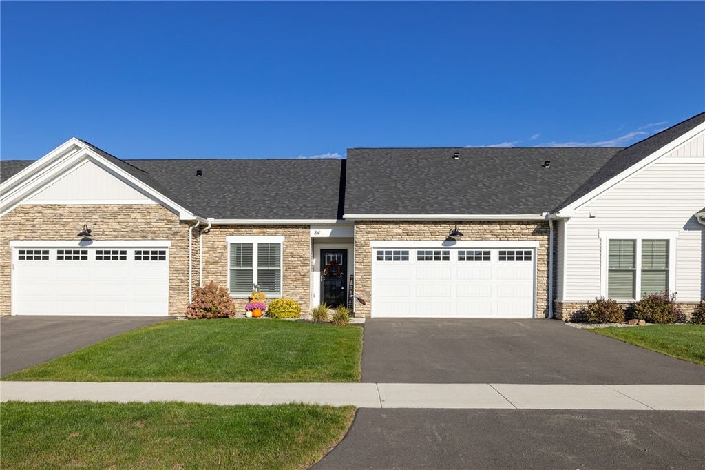 Welcome to 84 Autumn Leaf Trail in Webster! This immaculate 2023 new build is upgrade heaven — featuring soaring ceilings, big bright windows, and a stunning open floor plan. The kitchen shines with custom countertops, stainless steel appliances, and a gorgeous custom island perfect for entertaining. The primary suite offers a spacious walk-in closet and a luxurious bathroom complete with custom cabinetry and high-end finishes. Enjoy peaceful mornings on the covered back deck overlooking the pond. The finished basement provides endless possibilities, including space to add a third bedroom and bathroom. With first-floor laundry, a two-car garage, and premium touches throughout, this ranch-style townhouse perfectly blends luxury and convenience. Cheaper than building new — and already packed with every upgrade! Don’t miss this one! *Delayed negotiations Tuesday, October 21 at 3 PM *Open House: Saturday, October 18 11-1 PM & Sunday October 19 from 11-1 PM