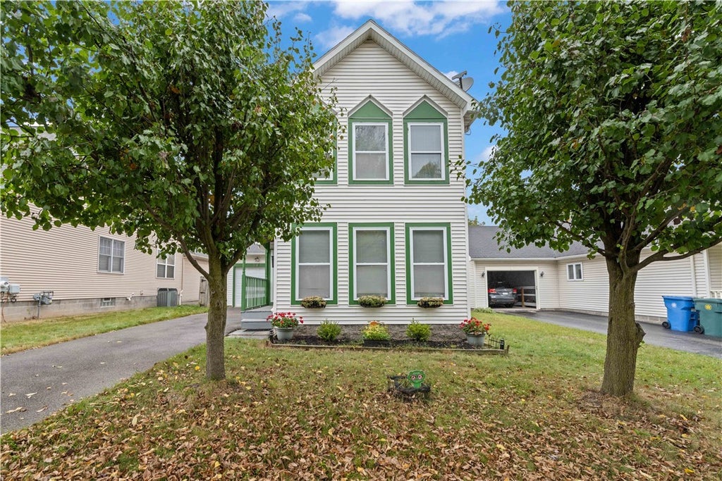 Charming 4-bedroom, 2-bath Colonial in the heart of the City of Rochester! The cute front porch welcomes you into a warm and inviting living room, bright with natural light. The big updated eat-in kitchen features light wood cabinets, stainless steel appliances, tons of counter space, and a generous dining area—perfect for everyday meals and entertaining. The 1st floor bedroom and full bath make one floor living a convenient option. Upstairs, you’ll find an updated full bath and 3 large bedrooms, including a primary bedroom with access to a private balcony. Enjoy peace of mind with vinyl windows throughout and central air (2020) for year-round comfort. Outside, relax or host gatherings on the large deck overlooking the fully fenced backyard. This amazing home is ready for you to move right in! Delayed negotiations until 10/22/25 at 10:00 am.