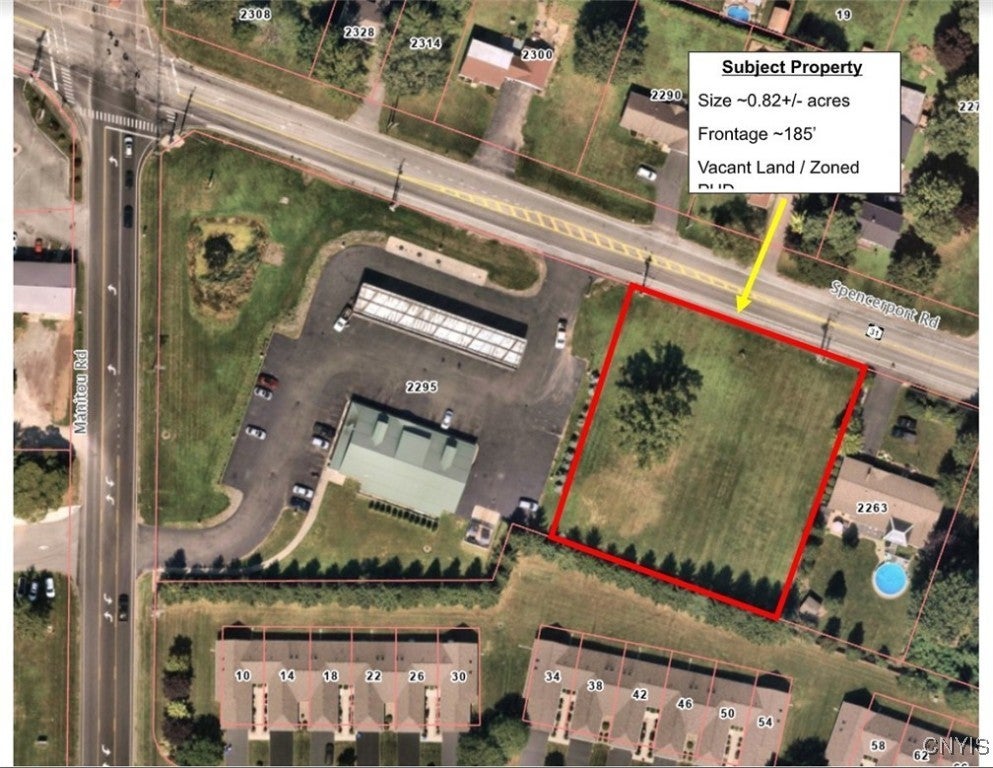 Located in the beautiful Rochester suburb of Gates is this .85, level acre lot. It is ideally situated beside Byrne Dairy at the intersection of Manitou Rd & Spencerport Rd. This ready to build lot is fully serviced and waiting to be transformed into your next business location. ** The taxes have been prorated to reflect the .92 acres available with this property **