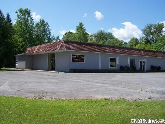 Masonry building with 11+ feet clear span and overhead doors. Currently automotive sales & service. Past uses: grocery, office retail sales, pre-school. Has paved lot with 20+ on site parking. Located at a traffic light controlled intersection adjacent to ALDI market on high traffic NYS Route 5. One mile to NYS Thruway Exit 34.