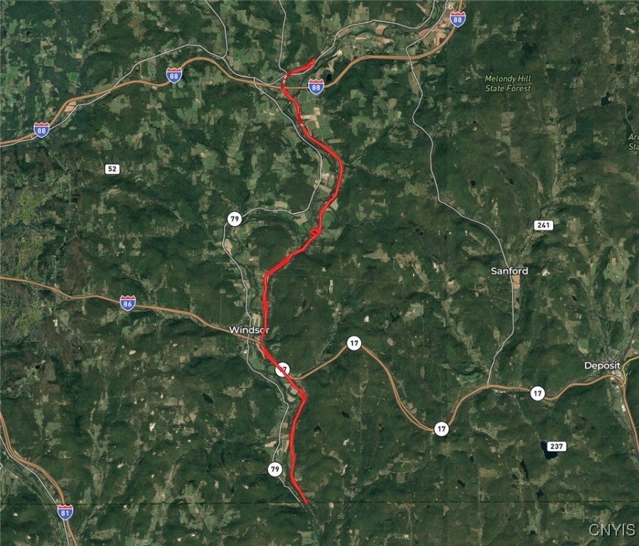 Highly specialized property! This 270+/- acre offering provides roughly 16 miles of former RR bed spanning from just North of Harpursville NY by State Route 88 South meandering along the North Branch of the Susquehanna River, passing through several towns and ending at the PA border. With one river crossing, several locations adjoining the river, and one area with nearly 16 acres on the river (1,100+/- ‘ river frontage ). The whole property is ideal for hiking/ biking and potential snowmobile trails. Option for utility service line connections or pipeline. To be sold without a survey. May have some timber value in sections. See the attached aerial map that outlines our understanding of the property based upon deed and tax records.