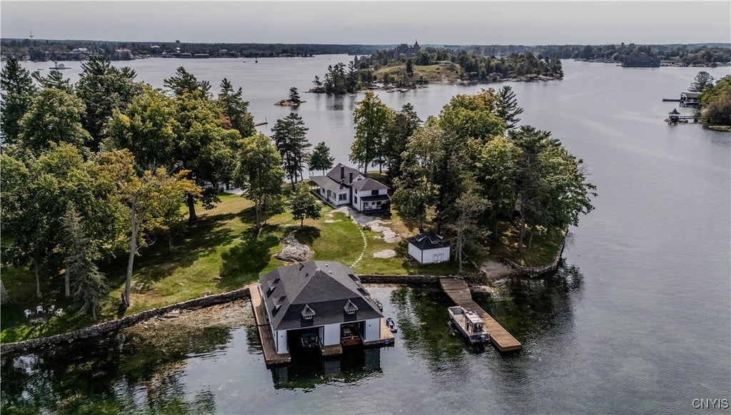 Escape to your Private Island Paradise! 5 Manhattan Island on the storied St Lawrence River, now available. Absolutely stunning residence and boat house, sitting on over half an acre. Known as "The Seth Green Cottage," the main house is believed to be the oldest standing home on the St Lawrence River! Entering the home, you will find updates that exude historic charm while providing modern comforts, including air-conditioning! 5 beds and 3 baths provide ample space for guests and owners to spread out, including a spacious second floor master suite with en-suite bath. Imagine, retreating to the master bed to enjoy river sunsets after a day enjoying the water, certainly an experience to impress even the most discerning buyer. Deep water boathouse provides ample, sheltered storage for boats and jet-skis. Don't wait, call or text today to schedule a private viewing!