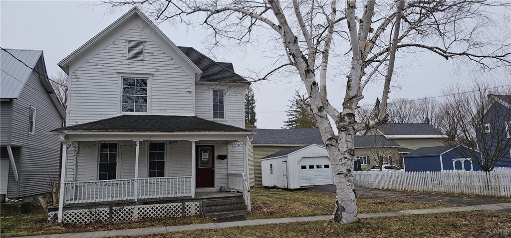 Excellent opportunity to bring this 4 bedroom, 1 full bath back to life. First floor offers a country style kitchen with oak finish cabinetry and pantry, formal dining room, private living room, bedroom or family room, front entrance with mud room. 2nd floor features 3 nicely sized bedrooms, large bathroom with tub and laundry hookups, huge foyer at landing, and access to crawl space attice. Nice covered front porch and covered side entrance to kitchen. Paved driveway with one stall garage and a quaint back lawn. Set up your private showing today.