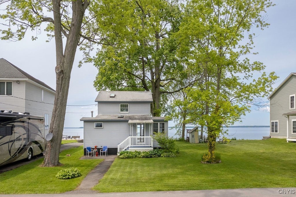 Whether you're seeking a weekend escape, year-round lakefront living, or a prime short-term rental investment, this exceptional property delivers. This move-in-ready cottage blends comfort and functionality, beautifully situated on 50 feet of private waterfront. While the cottage currently features one bedroom, the original blueprints from a 1995 renovation show a design intended for two. Additionally, the guest suite above the garage could easily be reconfigured to include two bedrooms—allowing the property to comfortably host larger groups while maintaining privacy for guests. As a short-term rental, this space offers excellent income potential. The cottage’s main level features an open-concept layout with wide wood plank flooring and a full wall of windows, offering stunning lake views from nearly every angle. The living area flows directly onto a lakeside patio, while the kitchen includes island seating and a designated dining space. A convenient half bath and laundry nook complete the main floor. Upstairs, you'll find a generously sized bedroom—easily convertible into two separate rooms—along with a full bath. What truly sets this property apart is the newly constructed, two-story barn-style garage—thoughtfully designed for both utility and enjoyment. The upper level offers nearly 1,000 square feet of finished living space with a full bathroom, perfect for hosting guests, extended family, or generating rental income. The lower level boasts over 1,500 square feet of heated space with a full kitchen. It has 6-inch poured concrete floors, radiant heat, 12-foot overhead doors, a car lift, hot/cold exterior water hookup, and electrical outlets every eight feet—making it ideal for a workshop, recreational storage, or hobbyist space. Located on a quiet, private road and serviced by public water and sewer, this home is as practical as it is picturesque. With endless recreational opportunities right outside your door, this is lakeside living at its finest.
