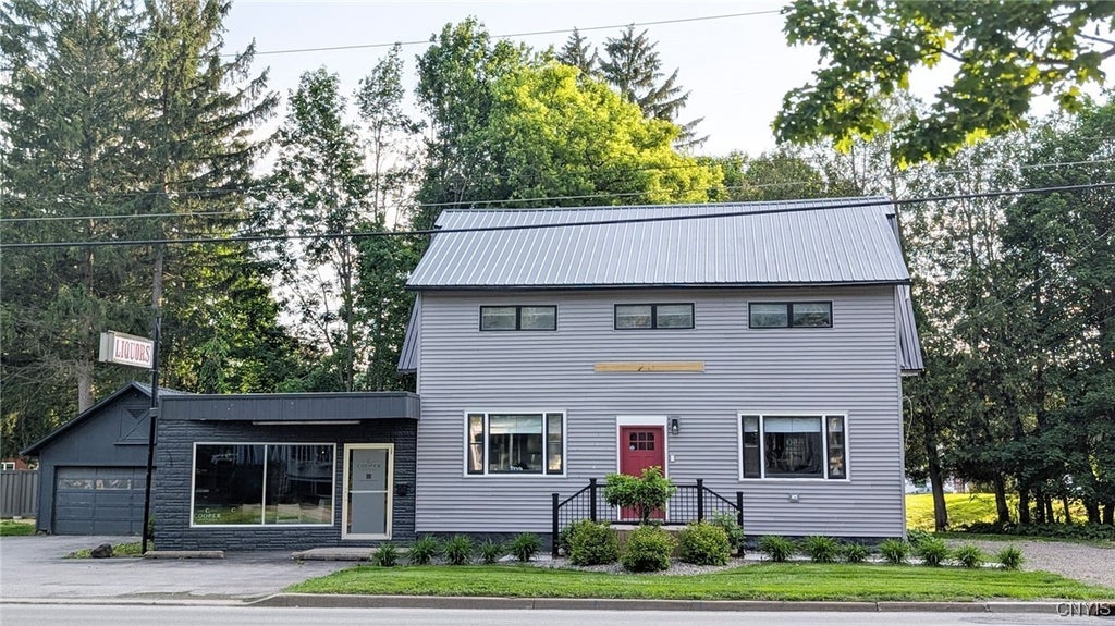 Every room recently renovated in this 5 bed 3 full bath home with attached commercial/office space providing the owner with rental income, already rented for at least 2 years with a wonderful commerical/builder tenant! Many various parking spaces. First floor bedroom and full bath with shower! Formal dining room off the open kitchen with breakfast/beverage nook. Center island/additional dining. New appliances. Light and bright living room with built in shelves around the front windows. Higher ceilings throughout. Upstairs has 4 bedrooms and 2 full baths (one of the bedrooms has extra space for a desk, large closet, it's own bathroom, and stairs to attic storage space). This home comes fully furnished and ready to go. Municipal electric. Great location near shops, schools, village green and electric car charging station. New roof and new vinyl siding among all of the updates! Mixed used property with various use potential!