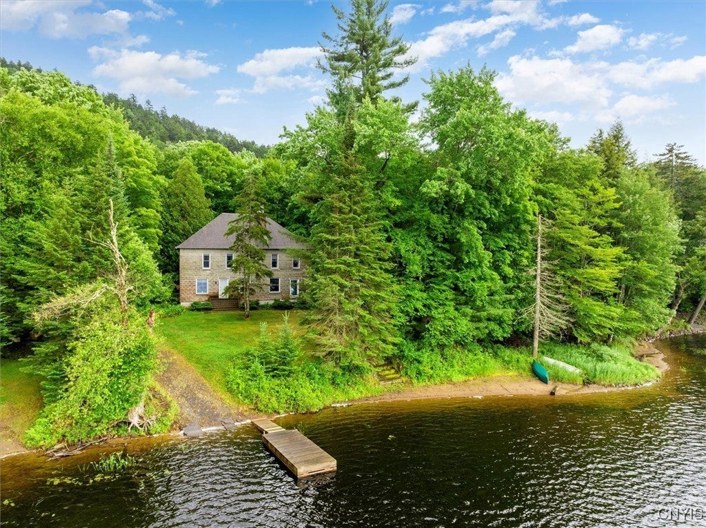 WELCOME TO PARADISE! Look no further if you ever considered investing in Lakefront property. This fully furnished, 4 season get away has a total of 8 bedrooms and 3 full bathrooms. On 150 feet private sand beach. Other features include a detached two stall garage, boat launch and dock, two stone fireplaces, two small creeks with a bridge at head of them, and a 450 foot drilled well delivering pristine water. Sitting on 4.08 acres bordering NYS land. Right in the heart of NYS snowmobile trail system. Call today to start your journey of experiencing the Adirondack life.