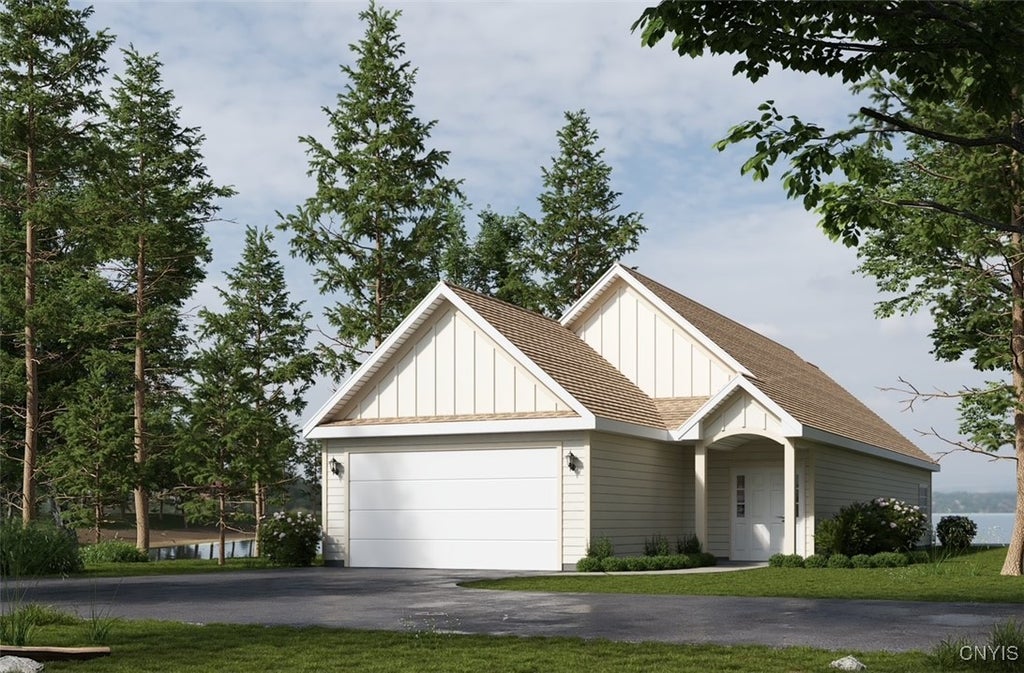 Your opportunity to be the 1st built home in Damon Point Development. Martin Custom homes, in conjunction with KK-J Architecture, PLLC and the seller are offering this proposed 1605 sq. ft. 3 bedroom, 2 full bath ranch on a 50' x 200' lot with 57' of prime Oneida Lake waterfront. Enjoy the view from your vaulted-ceiling great room looking past your 475' Trex deck to your future dock. There is a gas fireplace in your great room for those chilly Upstate nights and central-air connected to your 96% efficient gas-fired furnace to be comfortable year round. Your kitchen shows both a breakfast bar and a separate eating area where you can enjoy the water view. Plenty of cabinets and a separate pantry let you stock up for family and friend gatherings. The primary bedroom features an en-suite full bath and is located adjacent to the great room, while the other 2 bedrooms are more secluded from the greatroom so as not to disturb children's sleep. Martin Custom Homes knowledge and experience has included adequate allowances for you to pick the colors and designs of most of the interior items that make a custom home your own. They will also work with buyers if they have a different idea of what they want to build on this prime site and have built in an allowance for site work. Please see the proposed floor plan and spec sheets with allowances in the photo section.
