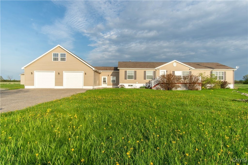 So much more than what meets the eye! Just 7 minutes from downtown Alexandria Bay, 15 minutes to Clayton, and 30 minutes to both Fort Drum and Watertown! This 3-bedroom, 2-bath modular home offers quiet country living with flexible space. Located on 14.25 acres, the land includes 7.75 acres of tillable fields, half an acre of woods, and 6 acres of open space. It’s ideal for small-scale farming, gardening, or simply enjoying the outdoors. Inside, the home includes 1,792 square feet of one-level living. The layout features a spacious living room that opens to the kitchen and dining area. In addition, there is a sitting room or office and a mud/laundry room. There is so much more to this home, a standout feature is the large finished room above the attached, through a large breezeway with high, cathedral ceilings, making it easy to move between the two. This bonus space is over 1,100 square feet, insulated, and includes both heat and air conditioning. It can be used as a guest space, home office, workout room, additional living space, or a creative studio, the choice is yours! The property also includes a 28x40 barn perfect for storage, animals, or workshop space. There is room to add fencing and create pastures. The land is peaceful and private, with beautiful sunsets and flowering perennial plants surrounding the home. Listed at $349,000, this home offers privacy, open space, and room for your ideas and future plans. Call today to schedule a private tour and see everything this special property has to offer.