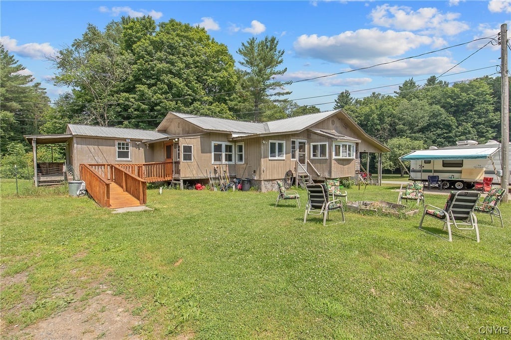 Escape to your own private retreat on over 52 acres of serene land, bordering state land and offering direct access to public trails. This spacious 4-bedroom, 3-bath ranch features over 2,100 square feet of living space with a flexible layout that includes a large family room, updated kitchen with center island, pantry, and open dining/living combo perfect for entertaining. Enjoy cozy nights with the a wood-burning fireplace. The full basement includes a 3rd full bath and offers potential for finishing or added storage. Outdoors, you’ll find a peaceful wooded setting, room to roam, and endless recreational possibilities. Property is eligible for USDA financing and offers the perfect blend of privacy and convenience. Located just minutes from I-81 and less than 35 minutes from Syracuse. Whether you're looking for a forever home, hunting camp, or homestead opportunity—this is it!