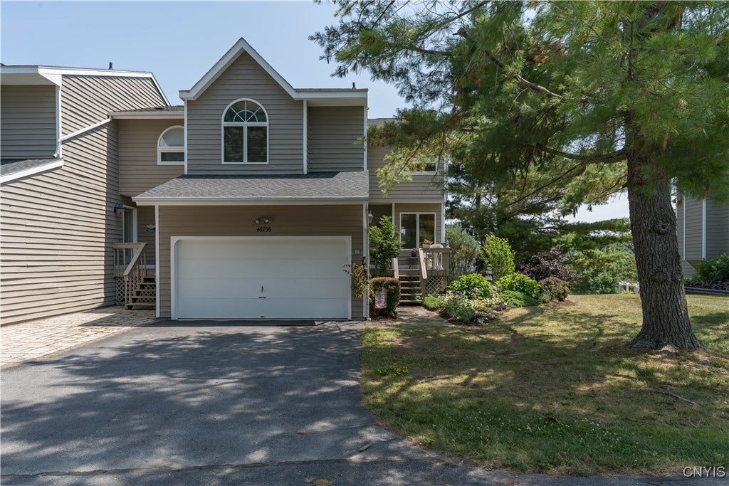 WATERFRONT TOWNHOME WITH DOCK SLIP ON THE ST. LAWRENCE RIVER! This stunning townhome on scenic Wellesley Island which is accessible by vehicle, offers over 2,300 square feet of beautifully finished living space—and includes a brand new dock slip with direct access to the world-renowned St. Lawrence River. Step inside to soaring ceilings, abundant natural light, and breathtaking water views from nearly every room. The open-concept living and dining area is ideal for entertaining, with seamless sightlines into the kitchen through a charming pass-through window. The kitchen boasts rich solid wood cabinetry and a brand-new 2025 stainless steel gas cooktop and oven combination, microwave, dishwasher, and refrigerator. Upstairs, a spacious loft leads to the serene primary suite featuring a luxurious en-suite bath and private balcony—perfect for morning coffee or evening ship watching. Even better, this upper balcony provides a front-row seat to the breathtaking July 4th fireworks over Boldt Castle. You’ll also find a second bedroom and full bath on this level, plus a bright home office with its own water view. The fully finished lower level adds 700+ square feet of flexible space—perfect as a guest suite, second living room, or third bedroom—and features one of the home's two cozy wood-burning fireplaces. There's also a dedicated laundry room on this level, along with a walk-out deck that leads directly to your dock slip. This home includes two wood-burning fireplaces that can easily be converted to gas (one in the living room, one on the lower level), a brand-new furnace and central AC (2025), and a 1.5-stall garage with plenty of space for your vehicle and golf cart. With two balconies, a walk-out deck, and effortless access to island recreation, golf, dining, and boating, this property offers the ultimate in waterfront living—whether as a full-time residence or luxury seasonal escape. Call & book your private tour today!
