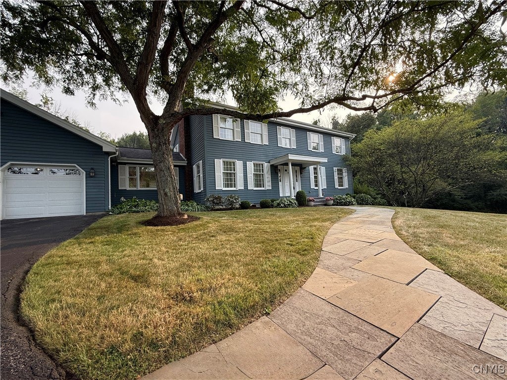 This beautifully maintained home combines timeless style with everyday functionality, creating a warm and welcoming space that’s perfect for family living. Located on a quiet road in one of Camillus’s most sought-after neighborhoods, you'll enjoy peaceful surroundings with the added bonus of being just minutes from Gillie Lake Park. Rich hardwood flooring runs throughout the main level, adding warmth and character to every space. The first floor boasts a generously sized eat-in kitchen filled with natural light. It features a large island, convenient pantry, and views of the private backyard, showcasing the beautiful patio and in-ground pool— perfect for summer gatherings. The formal dining room and living room provide cozy spots for family meals and holiday celebrations. A convenient first-floor half bath and a charming two-season screened-in porch add to the home's thoughtful layout. Upstairs, you’ll find three spacious bedrooms and a full bathroom. The primary suite is a true retreat, complete with a large walk-in closet and private bathroom. The partially finished basement includes built-ins and offers extra space for a home office, playroom, or media area. A paved circular driveway, two-car garage, and a beautifully landscaped lot complete this move-in ready home! From the ideal location to the thoughtful layout and backyard oasis, this property has so much to offer. Don’t miss your chance to make it yours! Call today to schedule your private showing and take the first step toward owning this beautiful home!