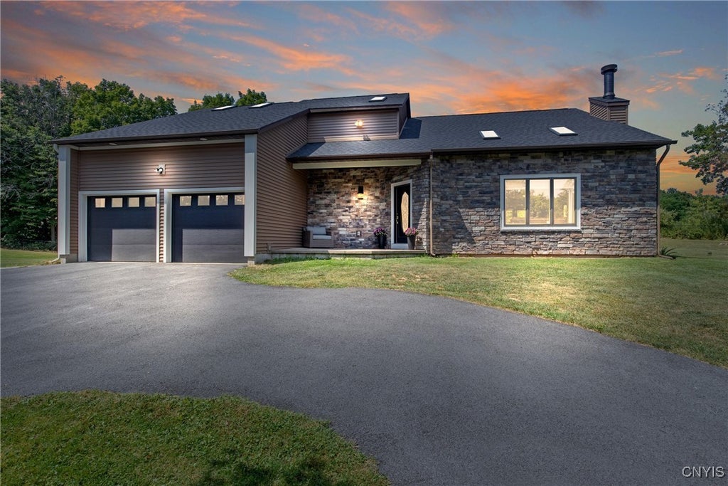 STARTING 1/2026 YOU CANNOT PULL A NEW CONSTRUCTION PERMIT FOR ANY GAS MECHANICALS, NO NEED TO BUILD, GAS FURNACE, STOVE, FIREPLACE!! Nestled on a sprawling 1.5-acre lot, this custom-built, contemporary home is a true masterpiece. Offering 4 bedrooms, with the potential for a 5th, and 2.5 baths, it combines exceptional craftsmanship with modern comforts. The original owner has maintained the home to perfection, and its unique features include stunning tiger oak wood trim, a grand floor-to-ceiling stone wood-burning fireplace, and beautiful travertine tile flooring in the kitchen. The foyer and primary bath are highlighted by elegant marble tile accents. The spacious, open-concept layout flows seamlessly, with a finished basement providing additional recreational space perfect for entertaining or relaxation. This home has been thoughtfully updated with brand-new Anderson 400 Series windows and skylights, Certainteed Monogram vinyl siding, a new roof, central air conditioning, and a 75-gallon hot water tank. The outdoor space is nothing short of spectacular, offering a 16x32 in-ground pool, a basketball court, and a large deck that spans the entire back of the house, perfect for entertaining or simply enjoying the peaceful, wooded backdrop. The property also features a pole barn, ideal for extra storage or a workshop, and a heated 2-car garage equipped with an electric car charger. With partial fencing and lush wooded surroundings, this home offers privacy and tranquility while still being conveniently close to local amenities. This is truly a one-of-a-kind home—schedule your private tour today and experience all that it has to offer!