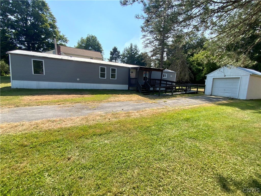 Welcome to your new sanctuary! Nestled on its own generous lot, this delightful trailer offers the perfect blend of comfort, convenience, and affordability—making it a smart choice for those tired of renting! With recent updates and a spacious feel, you’ll discover a place that truly feels like home. Three Inviting Bedrooms: Spacious and bright, each bedroom has been thoughtfully refreshed with new paint The open-concept living area seamlessly flows into the kitchen, while the eat-in area, highlighted by a charming bay window, invites plenty of natural light and is perfect for morning coffee or casual meals. Step outside onto the front entry deck, complete with a convenient ramp—perfect for easy access! Enjoy a good-sized yard that offers endless possibilities for gardening, play, or relaxation. Plus, a single-stall garage provides secure storage for your vehicle, tools, or recreational gear. Situated just outside the village, you’ll enjoy the peace and tranquility of suburban living while being only a quick 15-minute drive from Ft. Drum. Whether you’re commuting for work or enjoying the vibrant local community, this location is unbeatable. This charming home has undergone thoughtful updates, including new siding, flooring, new bathroom and paint throughout and plumbing to ensuring that you can move in without a worry and one that is cheaper than renting! Call today for your personal viewing and discover how this charming trailer can offer you the comfort and affordability you've been searching for!
