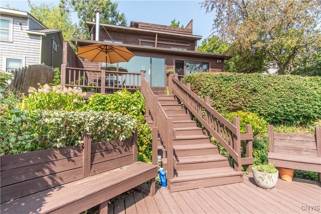 Check out this incredibly sweet 4 season Henderson Harbor getaway! This charming and unique tri-level home has amazing views over some of the best boating waterfront anywhere! Many recent updates to include remodeled living room and kitchen! Open Living room/Dining, Bar area, Central AC, all with views!!! Beautiful deck space includes 3 total areas for outdoor entertainment PLUS a deck on the top of the house off the master suite with hot tub! 2 car garage across the road with storage, gardens, older dock and hoist and the most crystal-clear waterfront you could ever ask for! Outstanding swimming, boating and fishing! Cozy up in the Fall and winter with the woodstoves and enjoy the lake life!!! This is a real gem that you do not want to miss out on!!!