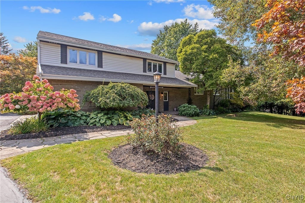 Tucked in on a quiet cul-de-sac street surrounded by mature trees, this .83 acre property offers space, privacy and a peaceful backdrop. Welcome to this charming home with a marble-floored foyer that leads to the inviting living room with wood-burning fireplace, and a formal dining room that opens to a screened porch. The tastefully updated kitchen features quartz countertops with breakfast bar, beautiful cabinetry and finishes, ss appliances, including a five-burner dual fuel range, and bench seating. The kitchen steps down to the family room, where new premium luxury vinyl plank flooring extends throughout most of the first level, where you’ll enjoy heated floors in the cooler months. From here, the space flows outdoors to a fenced backyard with a paver patio—perfect for entertaining or relaxing. The first level also includes an updated half-bath just off the foyer, a large laundry room, and another half-bath. A graceful, curved staircase leads to the primary suite offering a spa tub, walk-in closet, and sliders to a private deck, with two additional generously sized bedrooms and a full bath down the hall. The basement expands the living space with a pine plank ceiling, updated wet bar and flooring, and a second wood-burning fireplace. The seller has made many other recent updates including a 3-year-old roof and a 2-year-old combination boiler with multi-zone heating and endless hot water, giving peace of mind that the mechanicals are set for years to come. Close to shopping, restaurants, highways, and outdoor recreation. Jamesville-Dewitt school district.