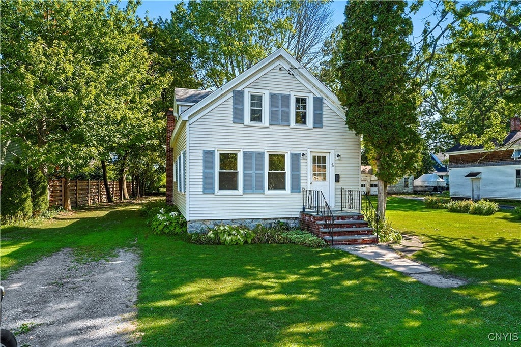 Nestled in the center of the village lies a delightful two bedroom residence with endless potential. Though in need of modernization, this charming abode is a timeless village treasure that has been cherished by generations of one family. The home features a formal living room, dining room, kitchen, stunning hardwood floors, a cozy enclosed side porch, and recently updated windows. Upstairs you will find two inviting bedrooms and a full bath. The property boasts a picturesque lot with lovely landscaping and mature trees. Conveniently situated within walking distance of the village, shops, and schools, this home is waiting for its next chapter to unfold.